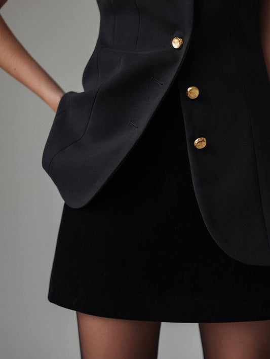 34% İndirimZarif Siyah Tüvit Ceket-Şort Takım