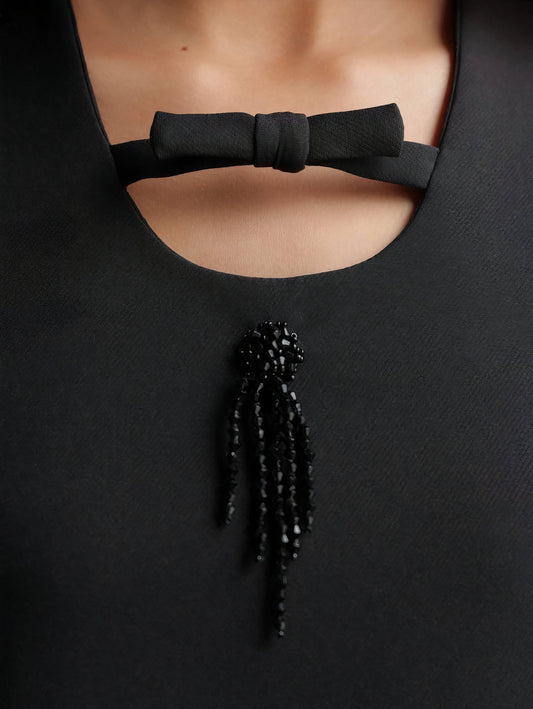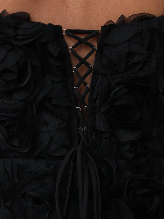 34% İndirimGül Dokulu Zarif Siyah Mini Elbise