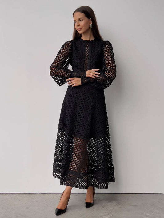 35% İndirimSiyah Nakışlı A Kesim Elbise