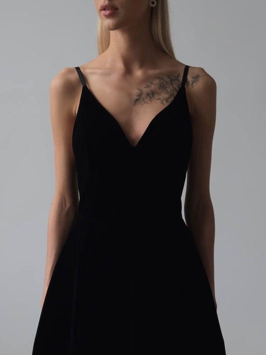 34% İndirimKlasik Silüet Kadife Salopet Elbise
