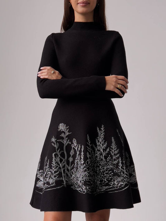 34% İndirimÇiçek İşlemeli Siyah Mini Elbise
