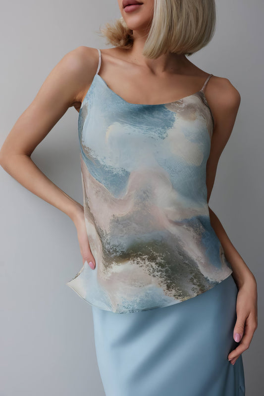 33% İndirimSpaghetti Strap Mermer Desenli Atlet