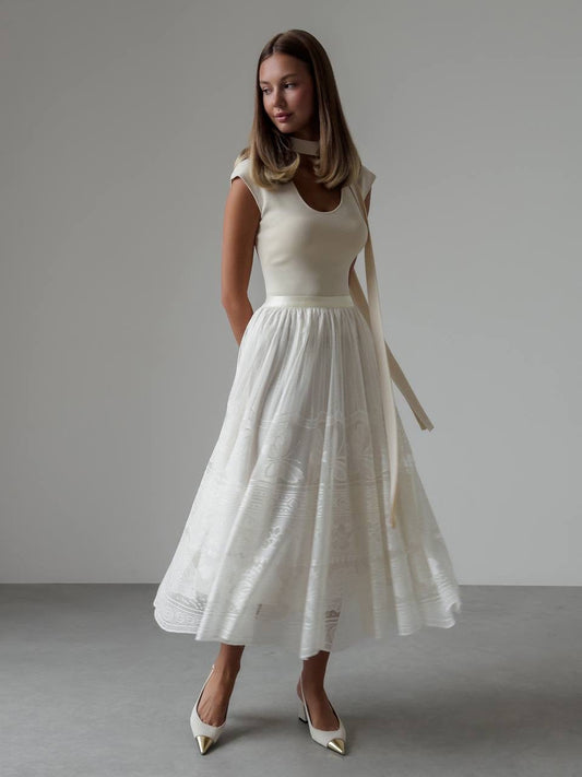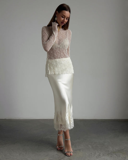 33% İndirimFildişi Dökümlü Dantel Üst