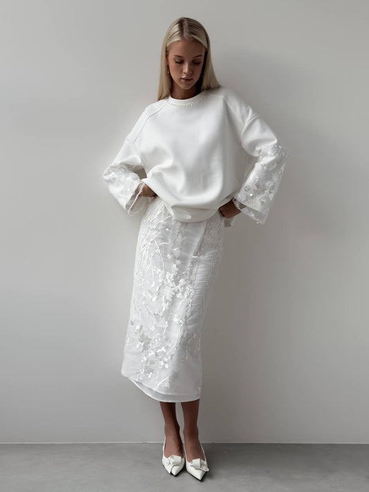 35% İndirimDantel Kollu Beyaz Sweatshirt