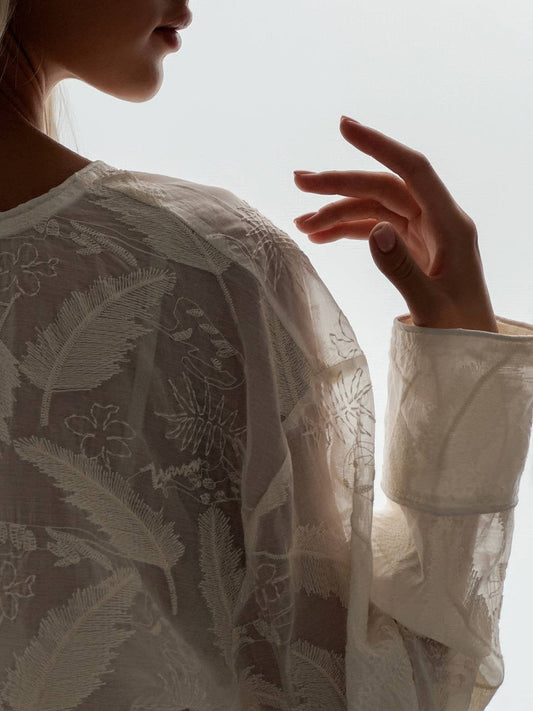 35% İndirimÇiçek Nakışlı Transparan Bluz
