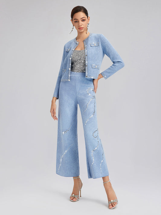 33% İndirimYün Taşlı Jakar Esnek Pantolon