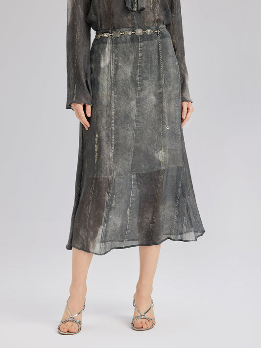 34% İndirimİpek Organze Barok Desenli Etek
