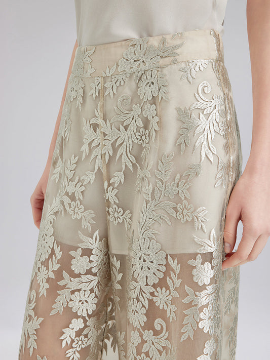 35% İndirimGümüş Dantel Kenarlı Bol Paça Pantolon