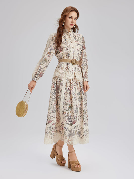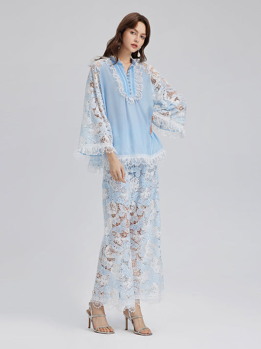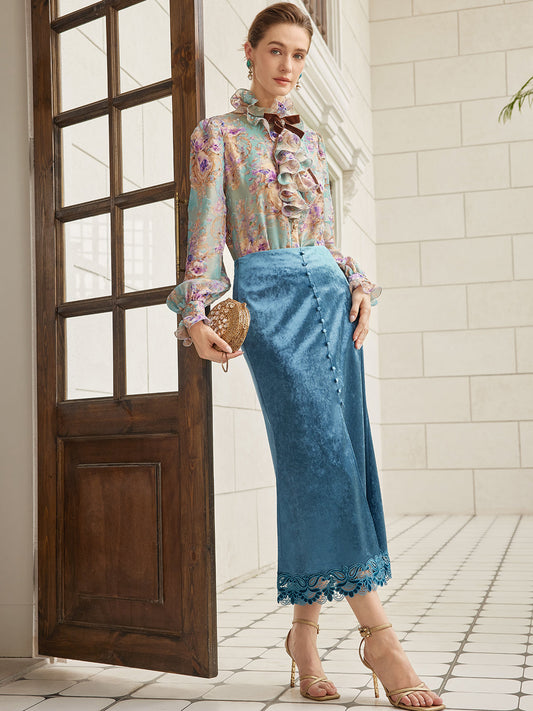 33% İndirimİpek-Keten Bitki Desenli Dantel Etek