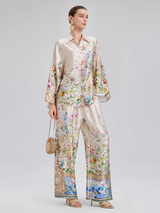 34% İndirimİpek Saten Çiçek Desenli Pantolon (%100 İpek)