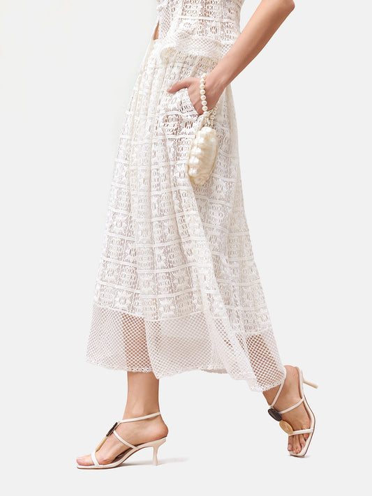 35% İndirimBeyaz Nakışlı Midi Etek