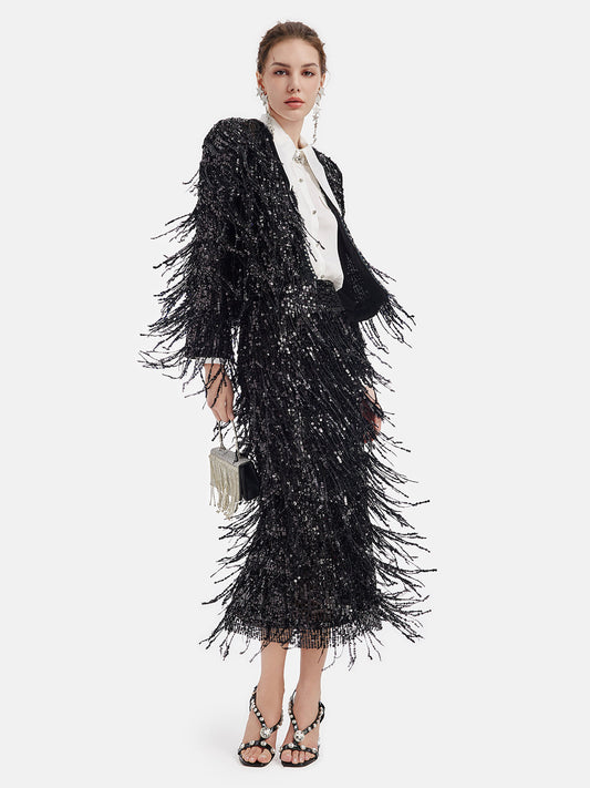 34% İndirimKar Payetli Midi Etek