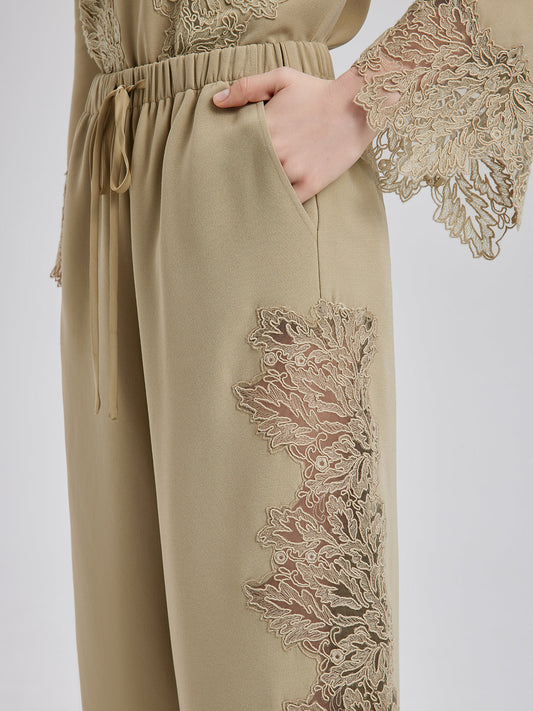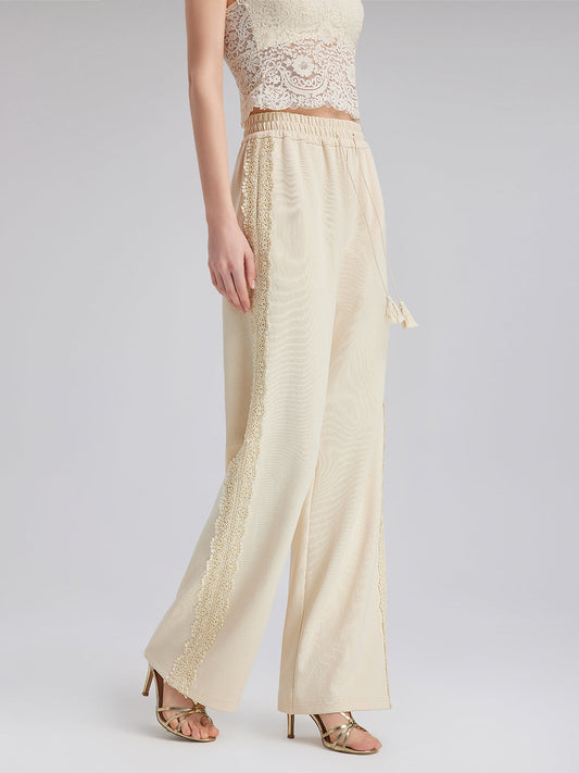 33% İndirimPamuk-Keten Dantelli Düz Triko Pantolon