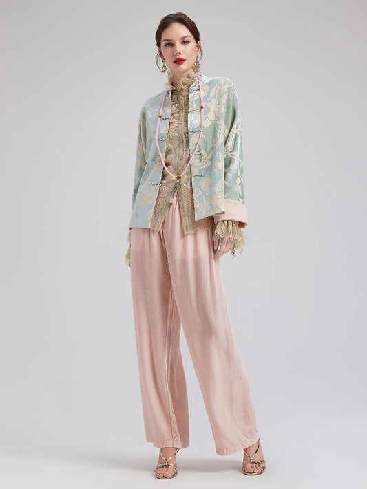 35% İndirimModern Etnik Kadife Çiçekli Ceket