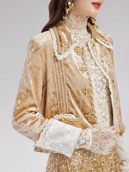 35% İndirimKadife Dantel Kenarlı Kısa Ceket