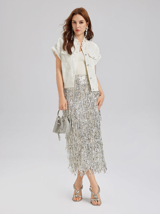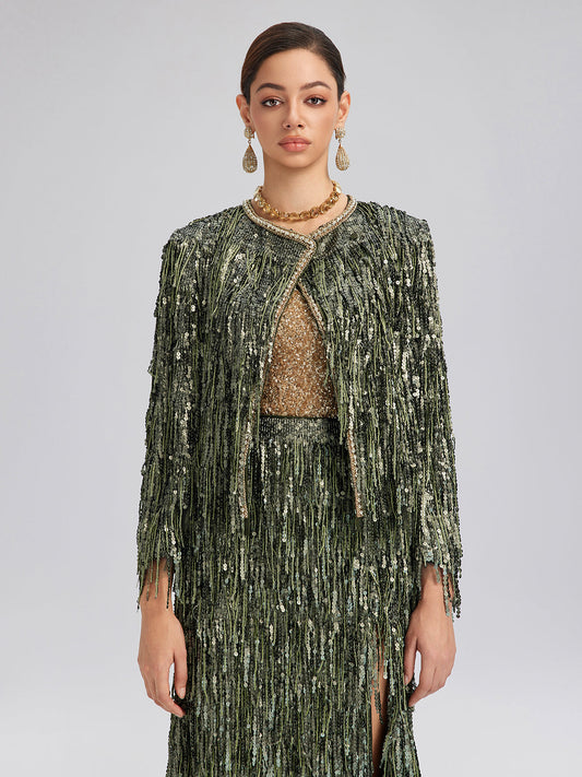 35% İndirimLüks Boncuklu Gölgeli Püsküllü Ceket