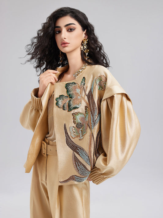 34% İndirimLüks İpek Boncuklu Aplike Ceket