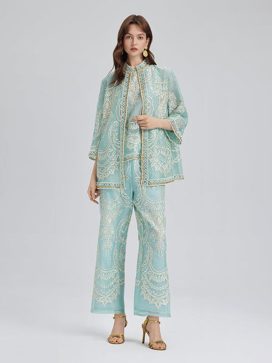33% İndirimOrganze Nakışlı Nane Yeşili Ceket
