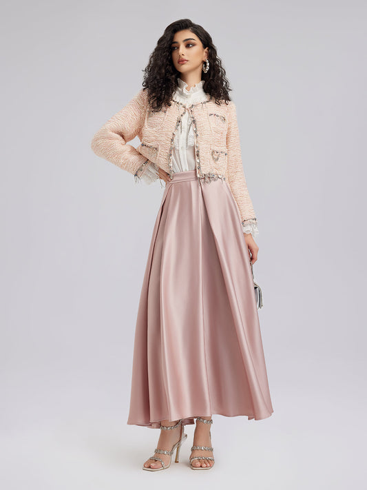 35% İndirimÖzel Dikim Pembe Tüvit Kısa Ceket