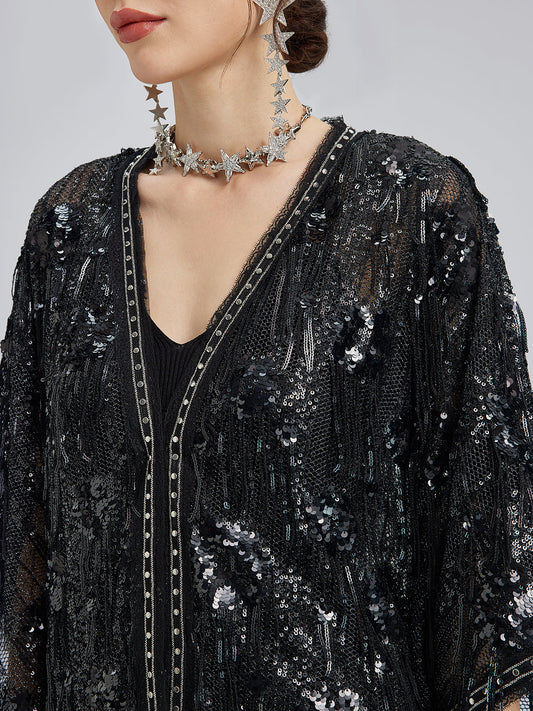 34% İndirimFransız Kadife Boncuklu Nakışlı Pelerin Kaban