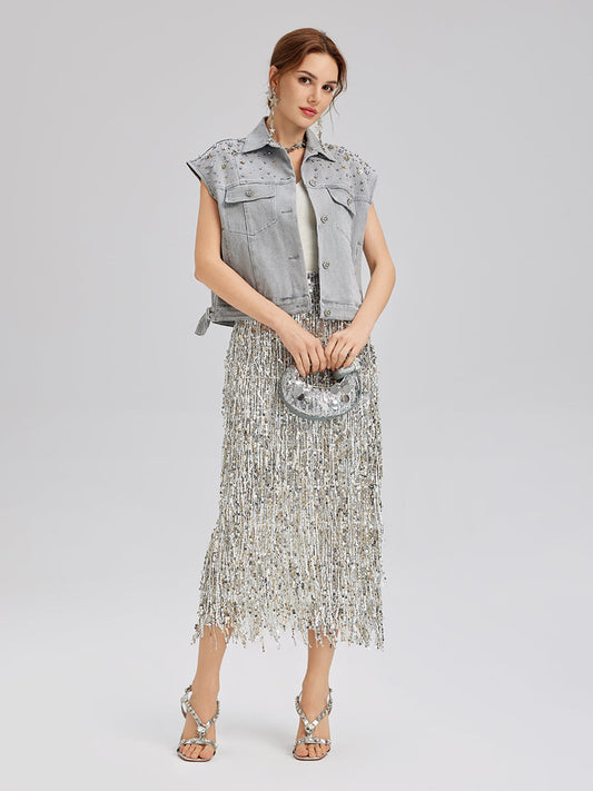 35% İndirimEl İşlemeli Boncuklu Yumuşak Kot Yelek