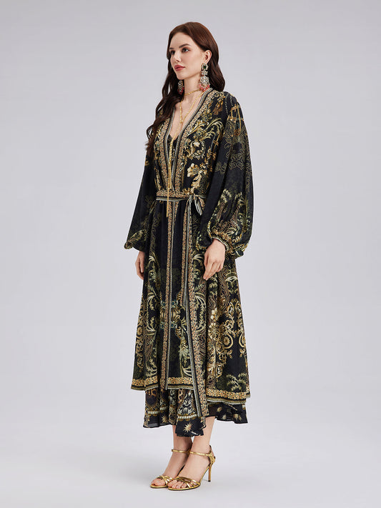 34% İndirimBarok Desenli İpek Uzun Kaban