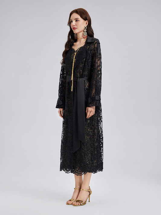 35% İndirimFransız Dantelli Uzun Trençkot