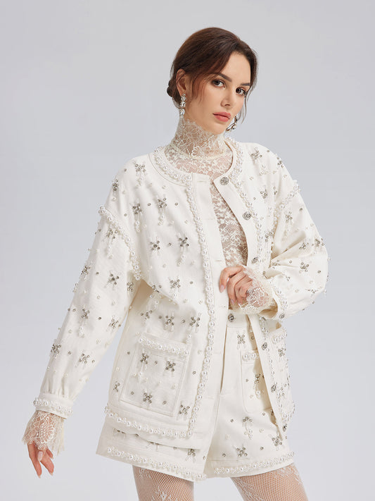 34% İndirimEl İşlemeli İncili Kurdeleli Kot Ceket