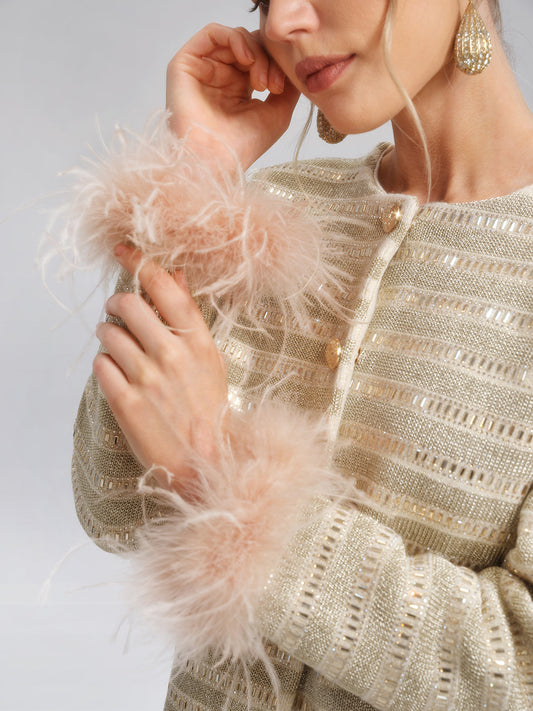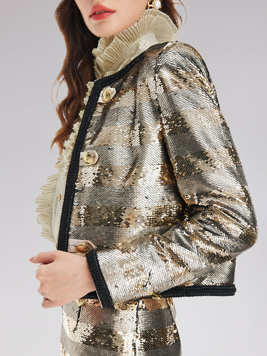 34% İndirimAltın Yaldızlı Pullu Çizgili Ceket
