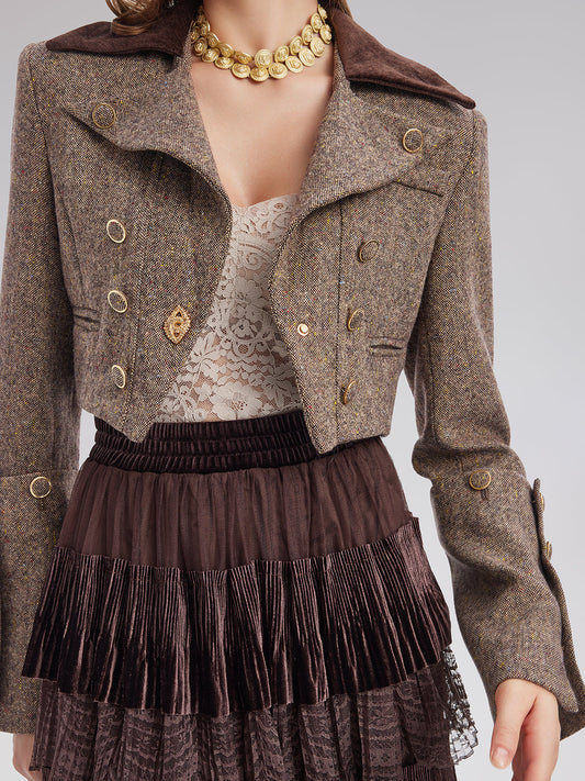 33% İndirim3 Boyutlu Kordon Nakışlı İpek Yün Kısa Ceket