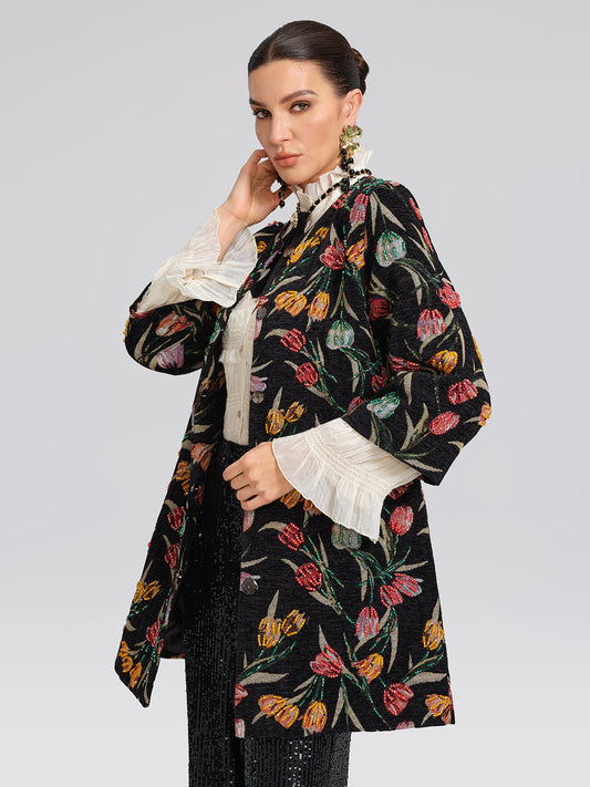 33% İndirimEl İşlemeli Pullu Çiçek Desenli Ceket