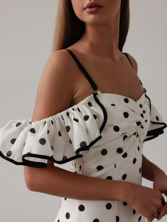 33% İndirimVintage Esintili Beyaz Puantiyeli Mini Elbise