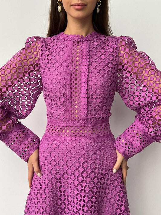34% İndirimGöz Alıcı Mor Dantel Elbise