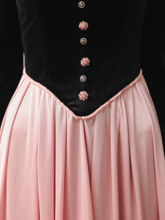 34% İndirimRomantik Çiçek Desenli Siyah Midi Elbise