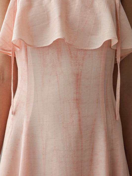 34% İndirimRomantik Renk Geçişli Pileli Mimari Elbise