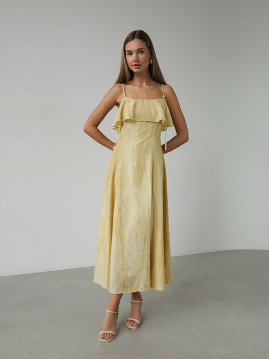 34% İndirimFildişi Bulut Saten Askılı Elbise