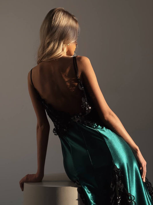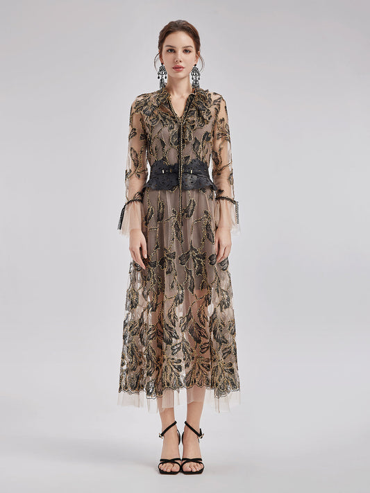 34% İndirimKomple Pullu Dar Kesim Uzun Elbise