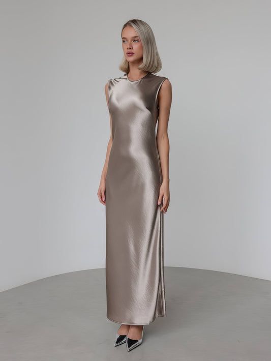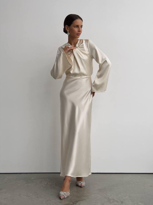 34% İndirimİpek Bağlamalı Yaka Maxi Elbise