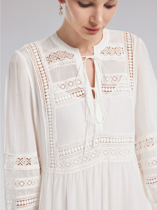 34% İndirimPencereli Nakışlı Bağcıklı Elbise