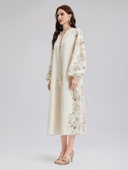35% İndirimEl İşlemesi Çiçekli Boncuklu Elbise