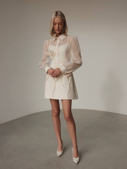 34% İndirimFiyonk Detaylı Fildişi Dokulu Mini Elbise
