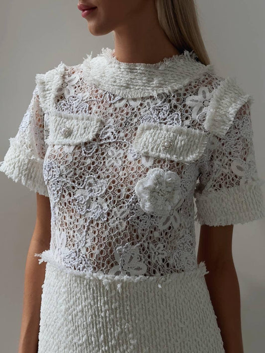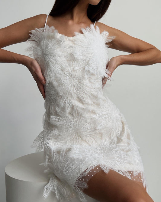 34% İndirimZarif Beyaz Dantel Mini Elbise