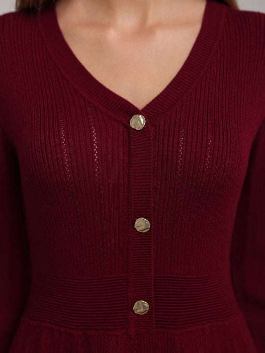 33% İndirimZarif Bordo Triko Kloş Elbise