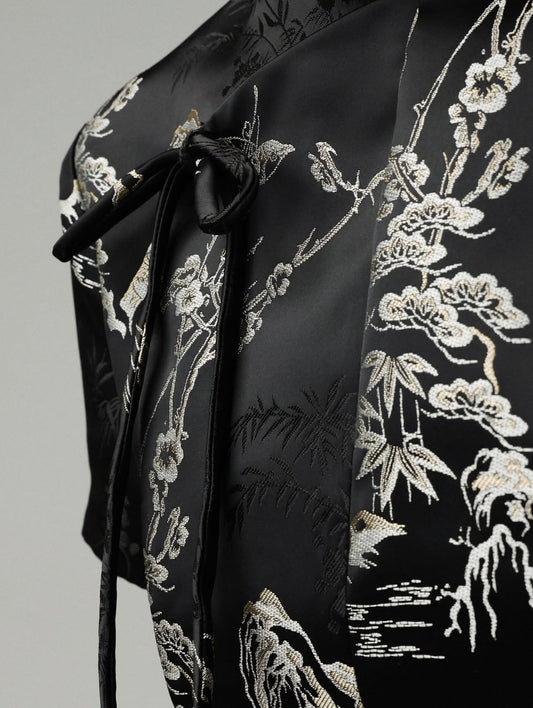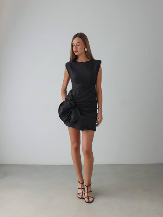 34% İndirimGül Dokulu Zarif Siyah Mini Elbise