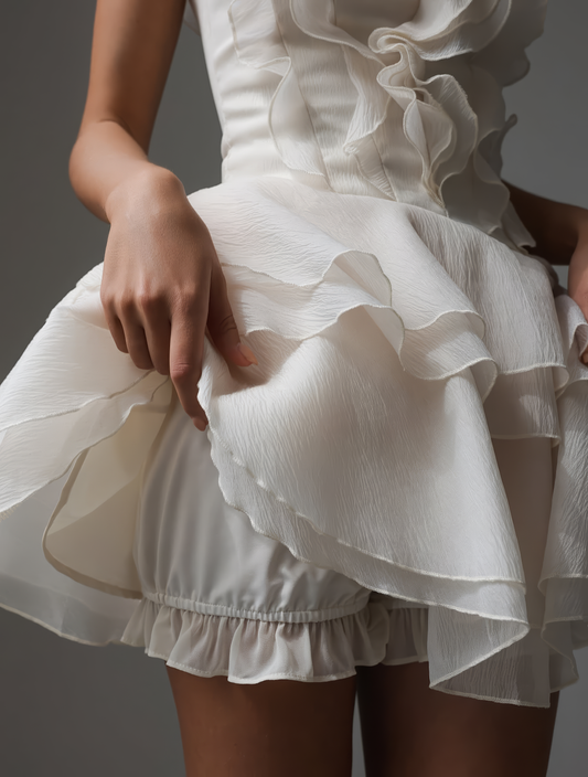 33% İndirimZarif Fırfırlı Beyaz Mini Elbise