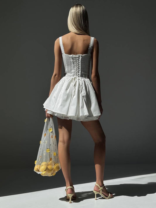 34% İndirimÇiçek Omuz Detaylı Zarif Beyaz Mini Elbise