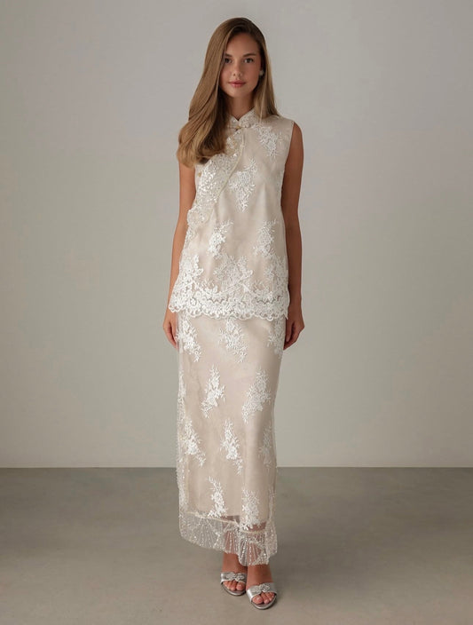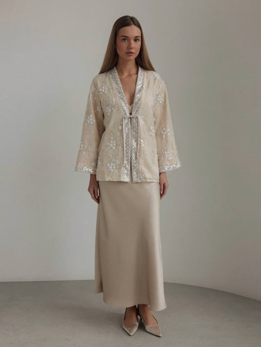 34% İndirimİnci Nakışlı Dantel Midi Elbise