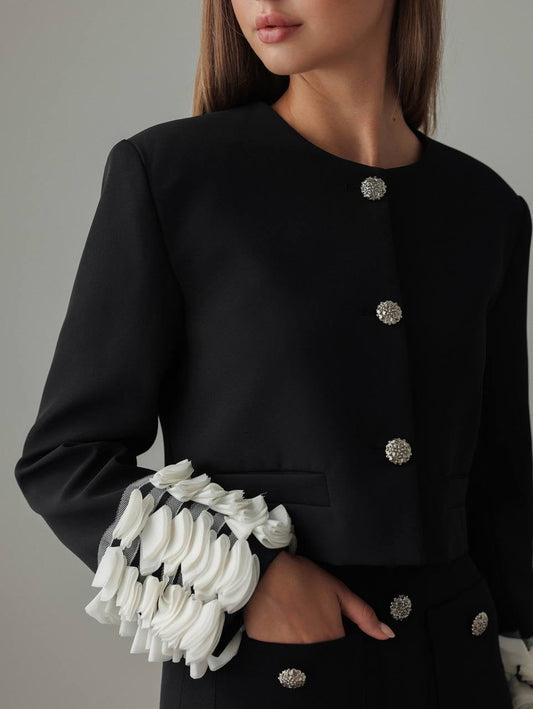 34% İndirimZarif Siyah Tüvit Ceket-Şort Takım