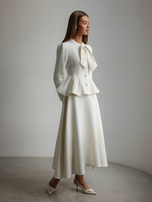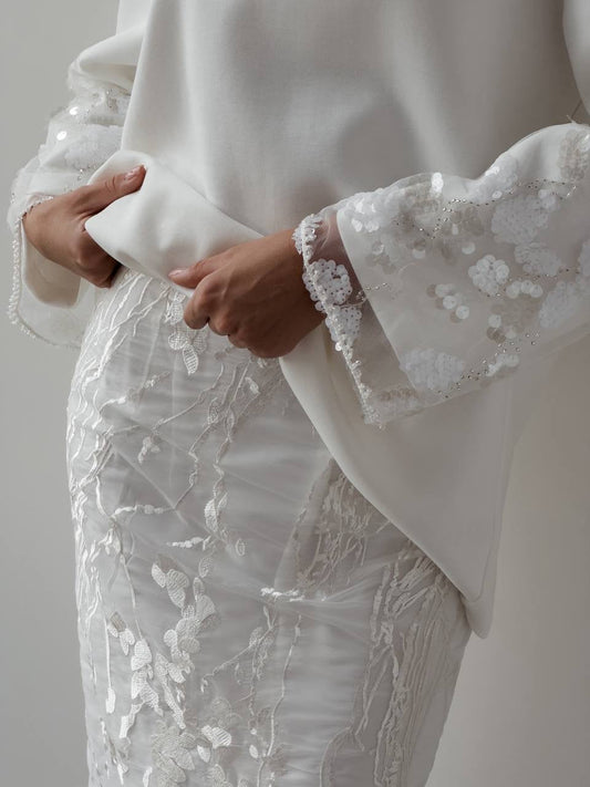 33% İndirimÇiçek İşlemeli Beyaz Peplum Takım