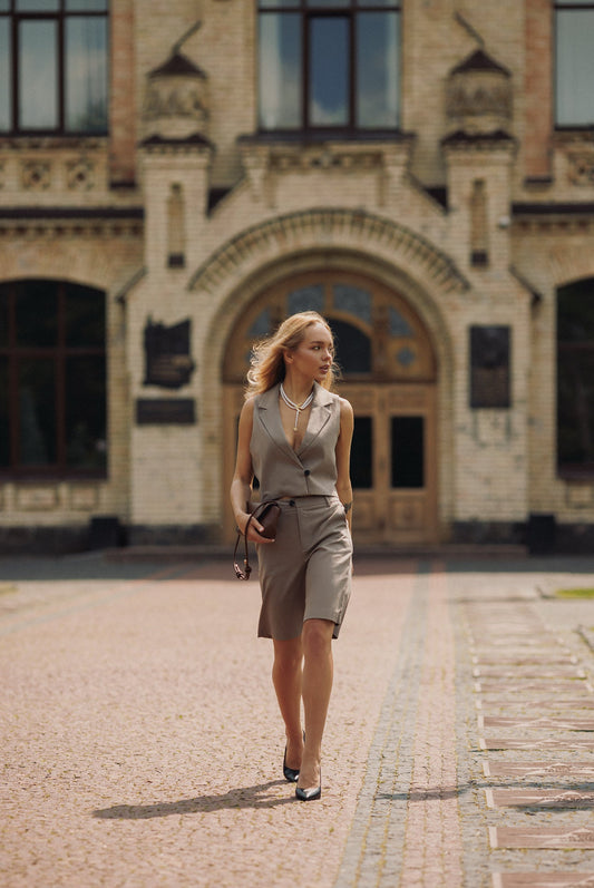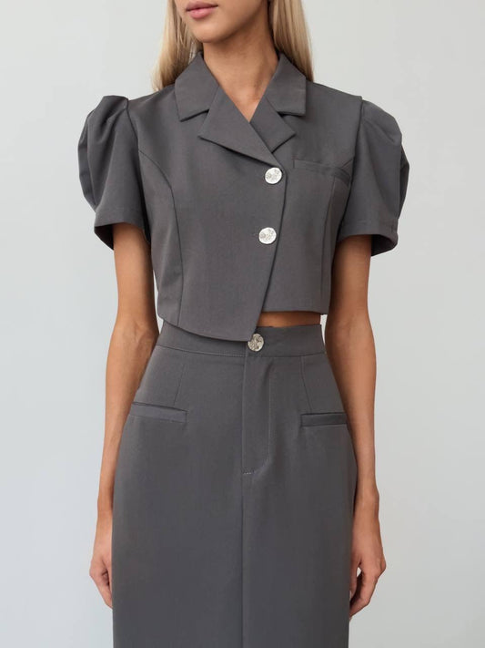 34% İndirimZarif Gri Crop Ceket Takım